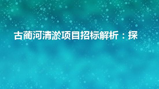 自古蔺河清淤项目启动以来,已经吸引了众多的专业企业参与,并有望成为清淤行业的标杆项目。而这个项目的招标细节与评估标准直接关乎投标企业的参与和未来发展。