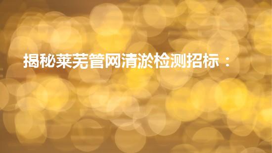 揭秘莱芜管网清淤检测招标:优胜者竞逐,万元巨奖等你拿!