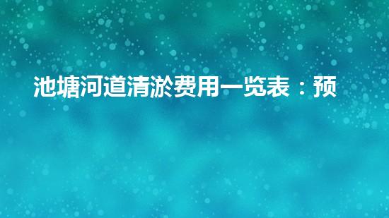 而池塘河道清淤费用也是很多单位和组织所关心的。本文章介绍池塘河道清淤费用一览表:预算清晰明了,用最优价格解决问题,为读者提供更为准确的池塘河道清淤费用参考。